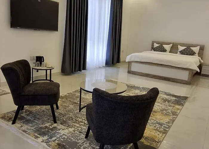 Gäste können auch eine Gemeinschaftsküche benutzen. Die Fahrt zum Flughafen Maskat dauert nur 15 Minuten.